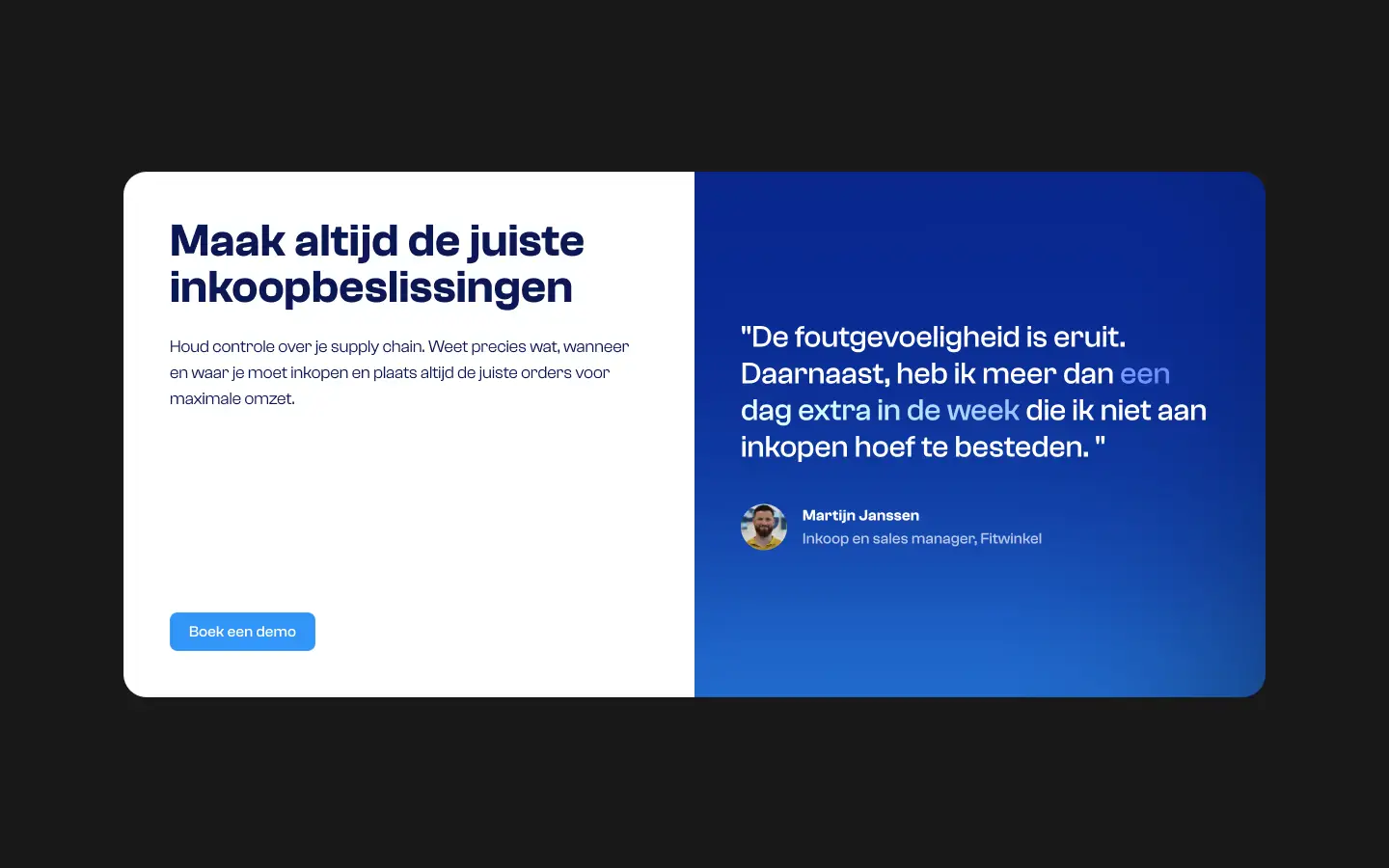 Optiply is a B2B SaaS platform that helps e-commerce brands optimize purchasing and inventory decisions using data-driven insights. I was responsible for the full digital execution — from early wireframes and UX strategy to visual design in Figma and full website development in Webflow. The focus was on translating a complex product into a clear, structured, and scalable digital experience. By building a component-based design system and CMS structure, the website supports ongoing growth, content expansion, and product evolution.