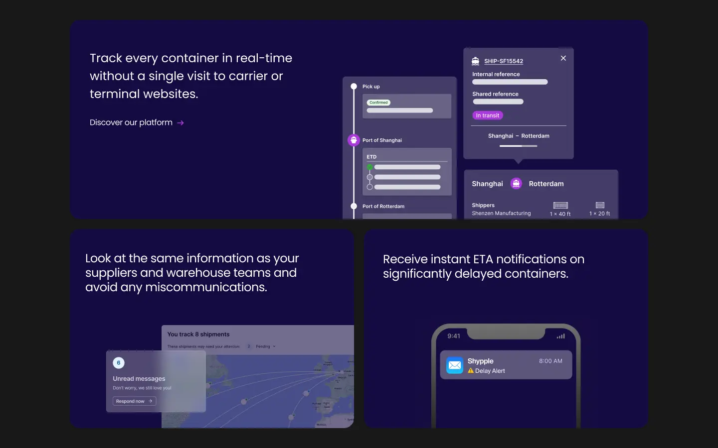 Shypple is a digital-first freight forwarding platform focused on transparency and efficiency in global logistics. I designed and developed the Shypple website in Webflow, translating a complex SaaS product into a clear, scalable digital experience. Beyond the initial build, I continue to support Shypple with ongoing maintenance, design system development, and marketing assets. This includes refining UX patterns, expanding visual components, and ensuring consistency across web, product communication, and campaigns — allowing the platform to evolve alongside the business.