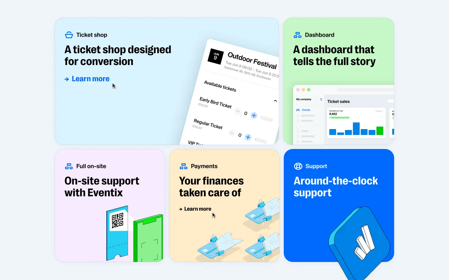 Weeztix is a modern ticketing platform operating at scale within the European events industry. I worked across design, UX, and digital execution to strengthen the visual system, improve user flows, and support product communication across multiple touchpoints. My role focused on aligning brand, interface, and content — from website redesigns and product animations to campaign visuals and multi-channel activation. The result is a more consistent, scalable digital presence that supports both users and business growth.